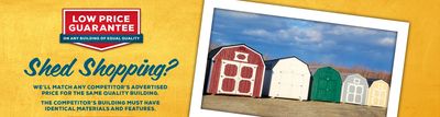 Worried about getting the best price? We offer a low price guarantee so if you find a new shed built exactly like ours with the same high quality materials and specifications, bring us the quote and we would be happy to match it!